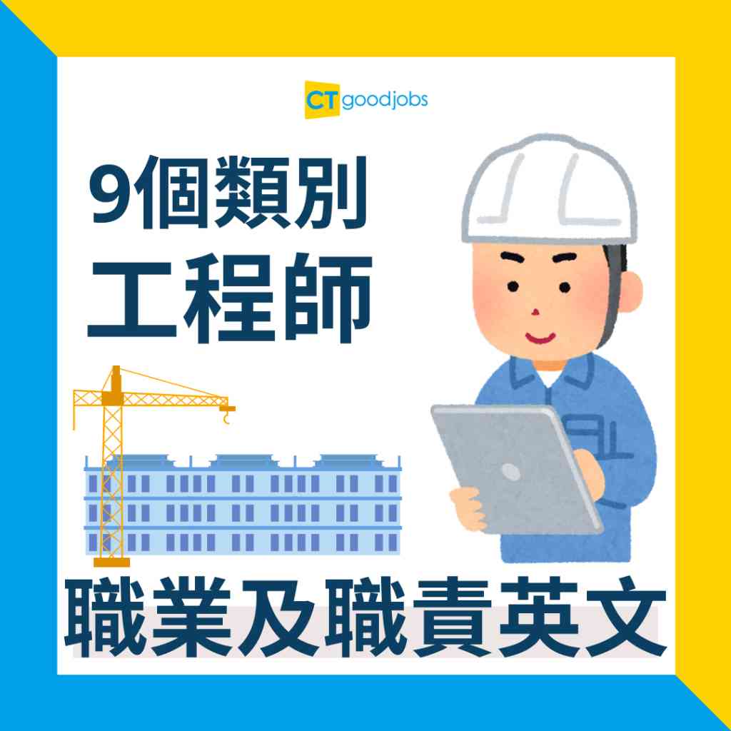 工程師的職業範疇廣泛,工作領域更涵蓋科技業、建造業等。香港目前具有21個工程界別,CTgoodjobs編輯部今次準備了其中9個界別的工程師英文名詞,以及分別如何以英文表達該9個類別的工程師工作內容,讓你向其他人解釋職責時能夠更得心應手。