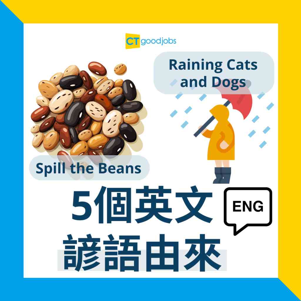 打工仔與外籍同事溝通時,很常會聽到他們說一些地道諺語,例如「Break the Ice」、「Spill the Beans」等,但你有沒有想過這些說法從何而來?CTgoodjobs編輯部為大家整理了5個常見的諺語,以及其由來,希望能夠增加你對英語的認識!