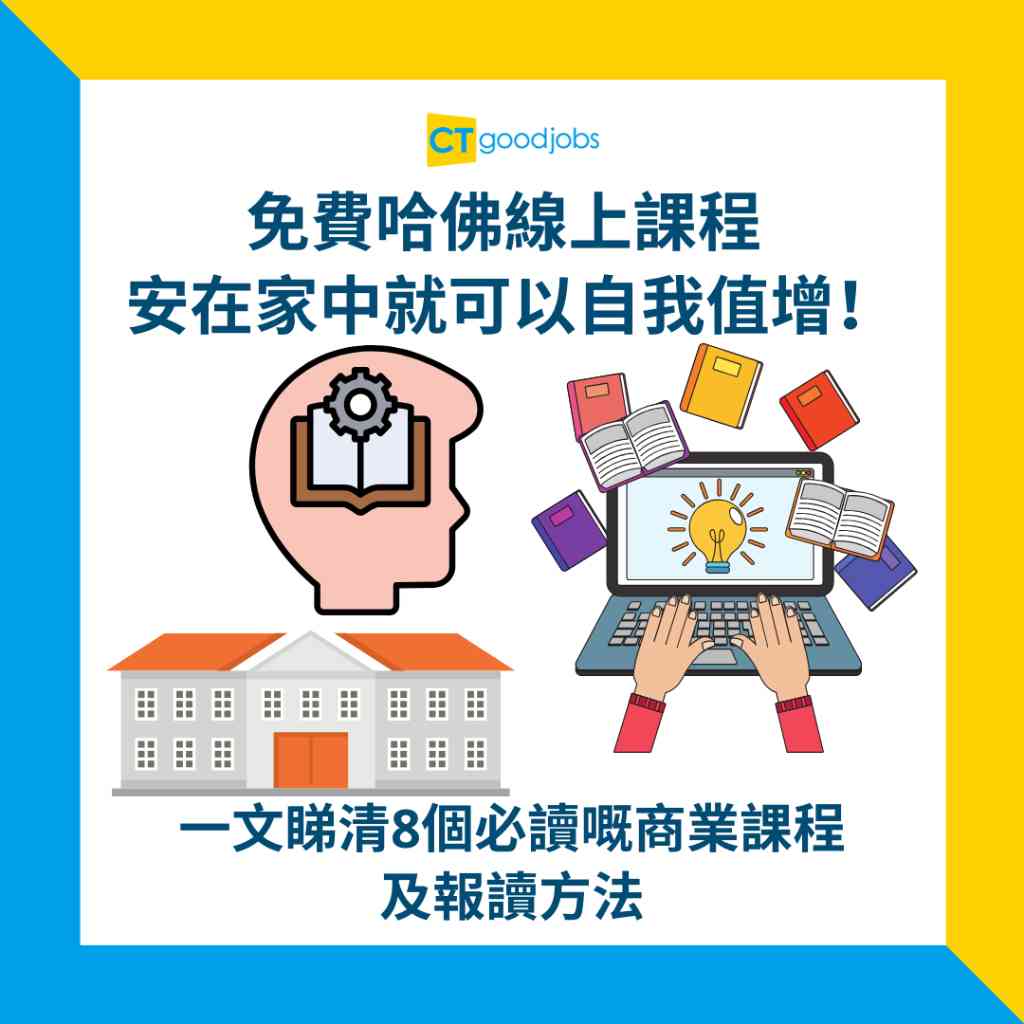 世界頂尖學府——美國哈佛大學(Harvard University)於網上開設了免費的進修課程,供大眾安在家中便能輕鬆學習。CTgoodjobs為各位整合了8個必讀的網上商業課程以及報讀方法,有意欲了解人士就不容錯過!