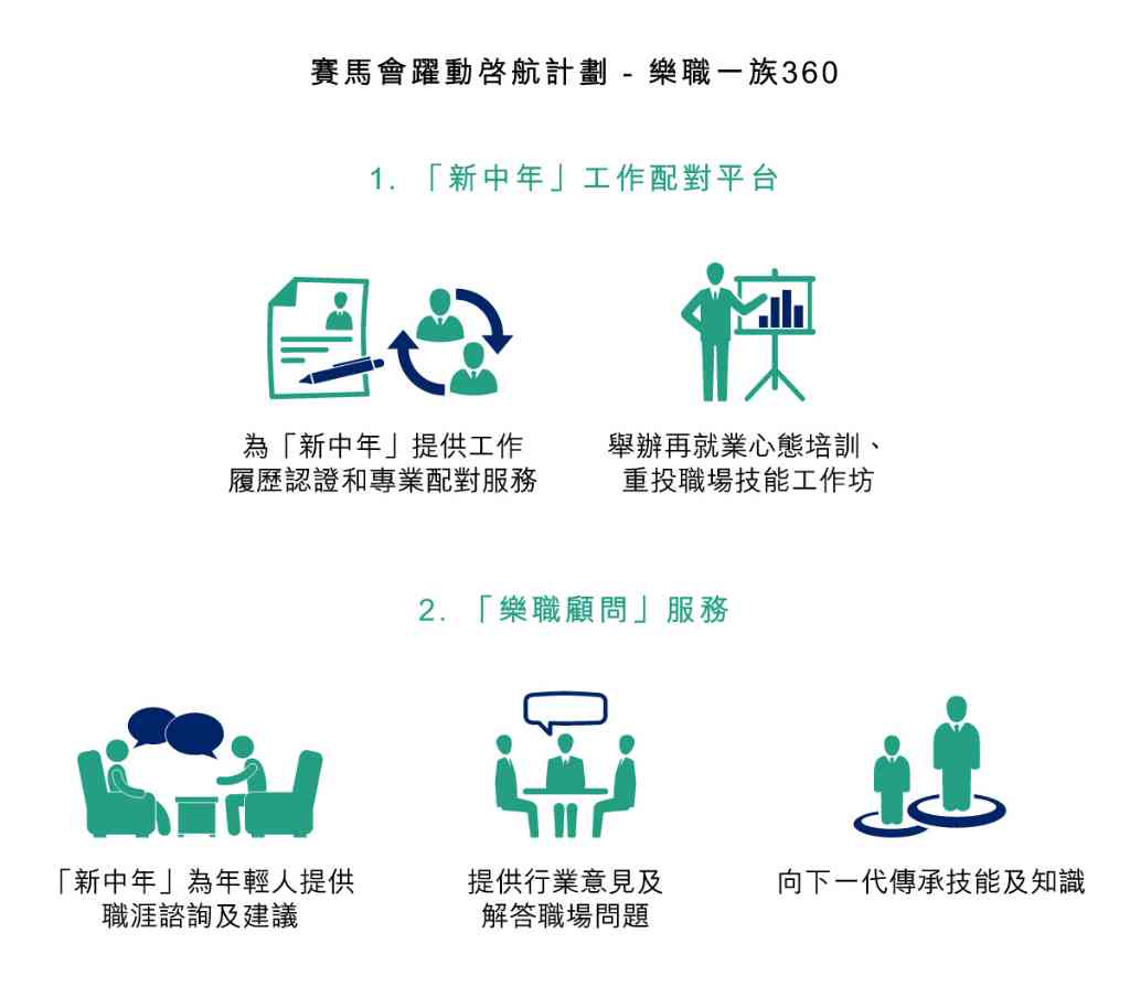 縱然年長人士有意重投職場,不過未必有途徑接觸潛在僱主。有見及此,樂活新中年慈善動力透過「賽馬會躍動啓航計劃 - 樂職一族360 」建立「新中年」工作配對平台,希望他們能充分裝備自己迎接事業的新一頁。