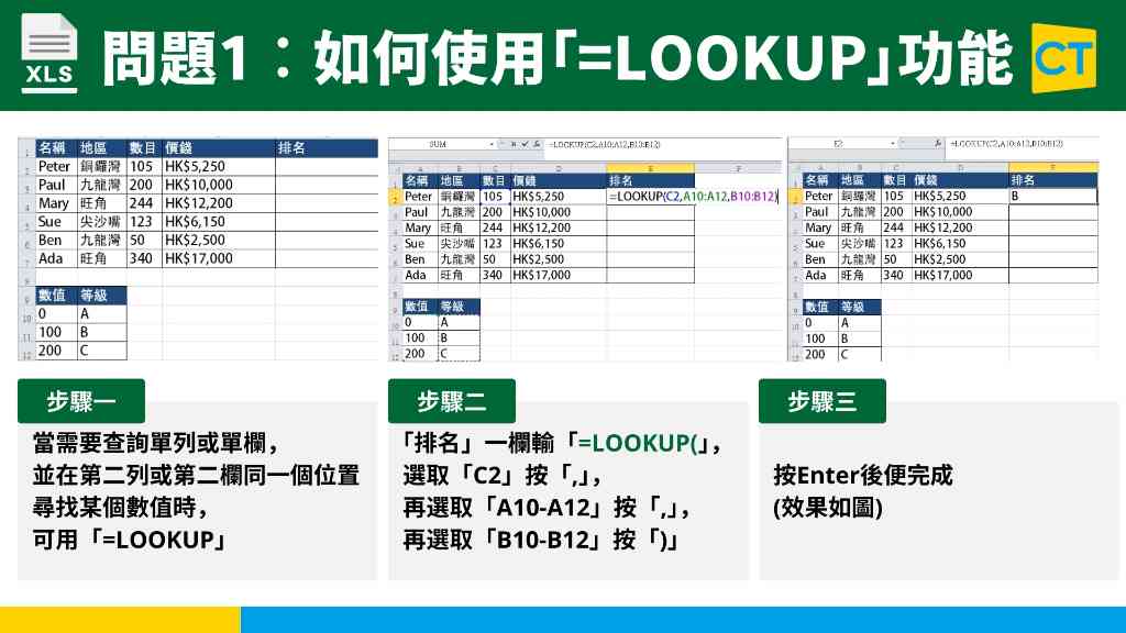 問題1︰如何使用「=LOOKUP」功能