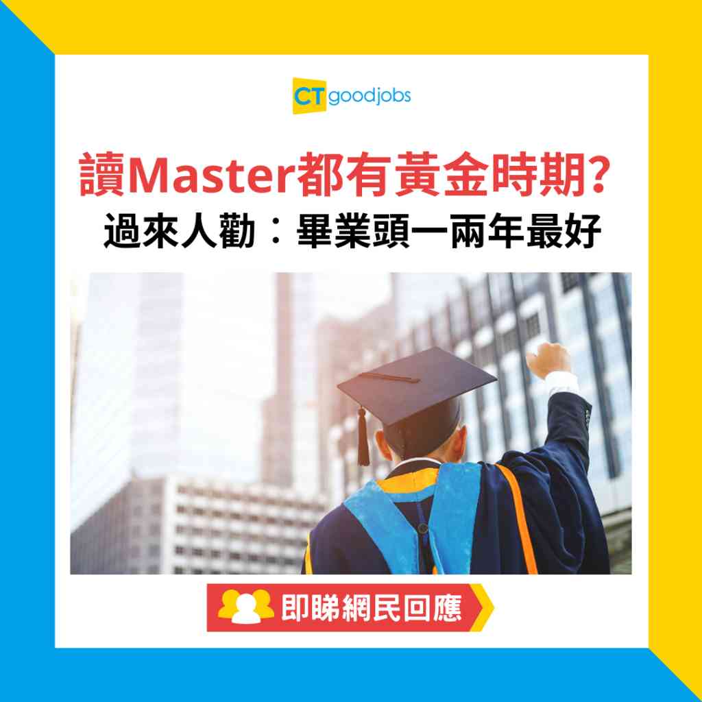 正所謂「學海無涯」,對於學習,有人認為是用來豐富人生,有人視為職涯上爬升得更高的踏腳石。不少人為了可以升職加人工,都會選擇報讀碩士課程進修,但何時才算是讀碩士的最佳時機呢?近日有打工仔在連登討論發文,以過來人身份勸勉其他人,「Master 好趁畢業頭一兩年仲有熱誠讀」,事主表示自己差不多三十歲在開始,感到力不從心,難道讀書真的有黃金時期?