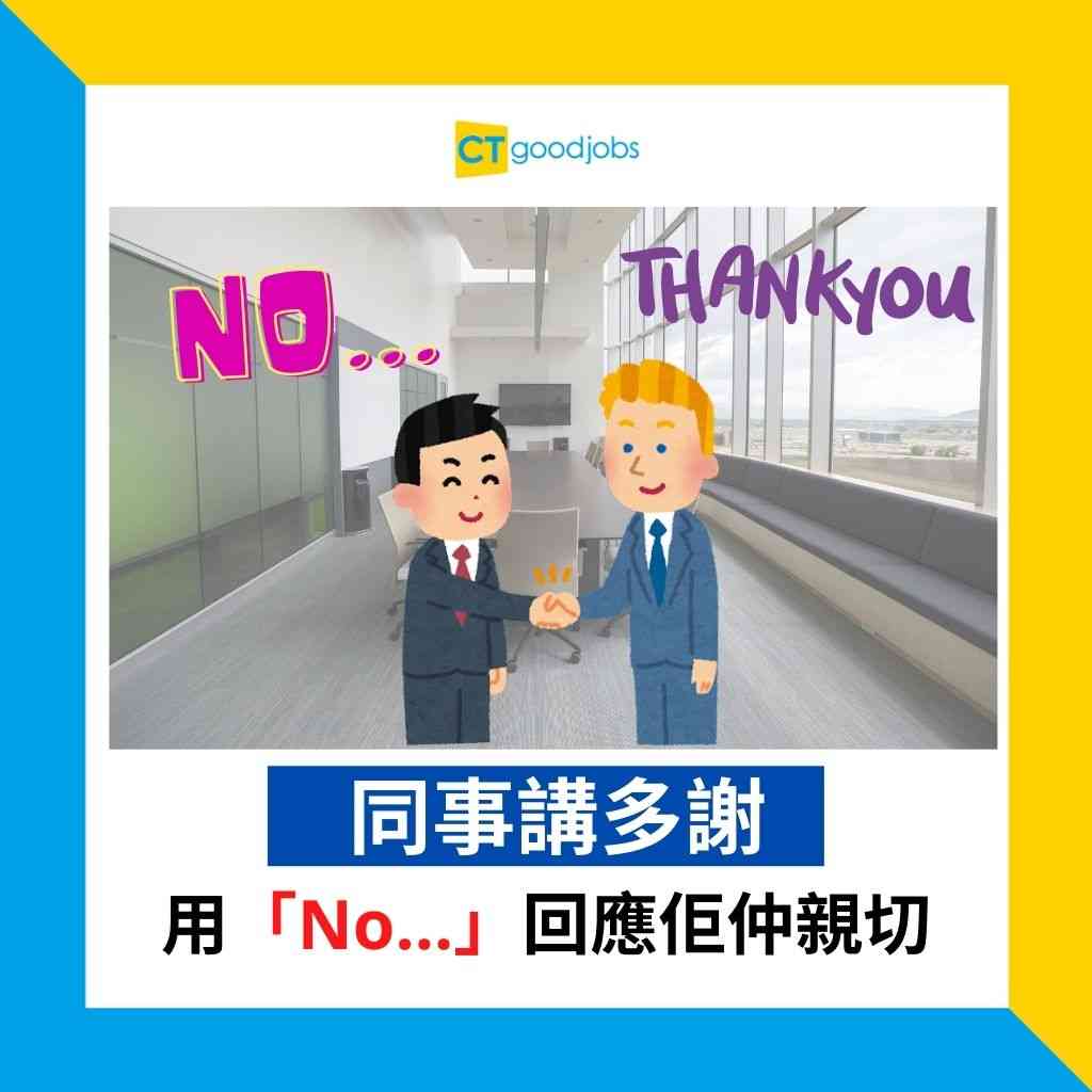 職場如人生,從來都是「禮多人不怪」,別人幫助了自己都會跟對方說一句「Thank you」,而經過多年的英文學習生涯,聽到別人說謝謝,會自然的回應「you are welcome」,不過這句未免太過「書卷味」重,感覺像如同事在練習英語會話,其實「唔使客氣」可以有好多種說法,不妨試下用「No」字作開始?