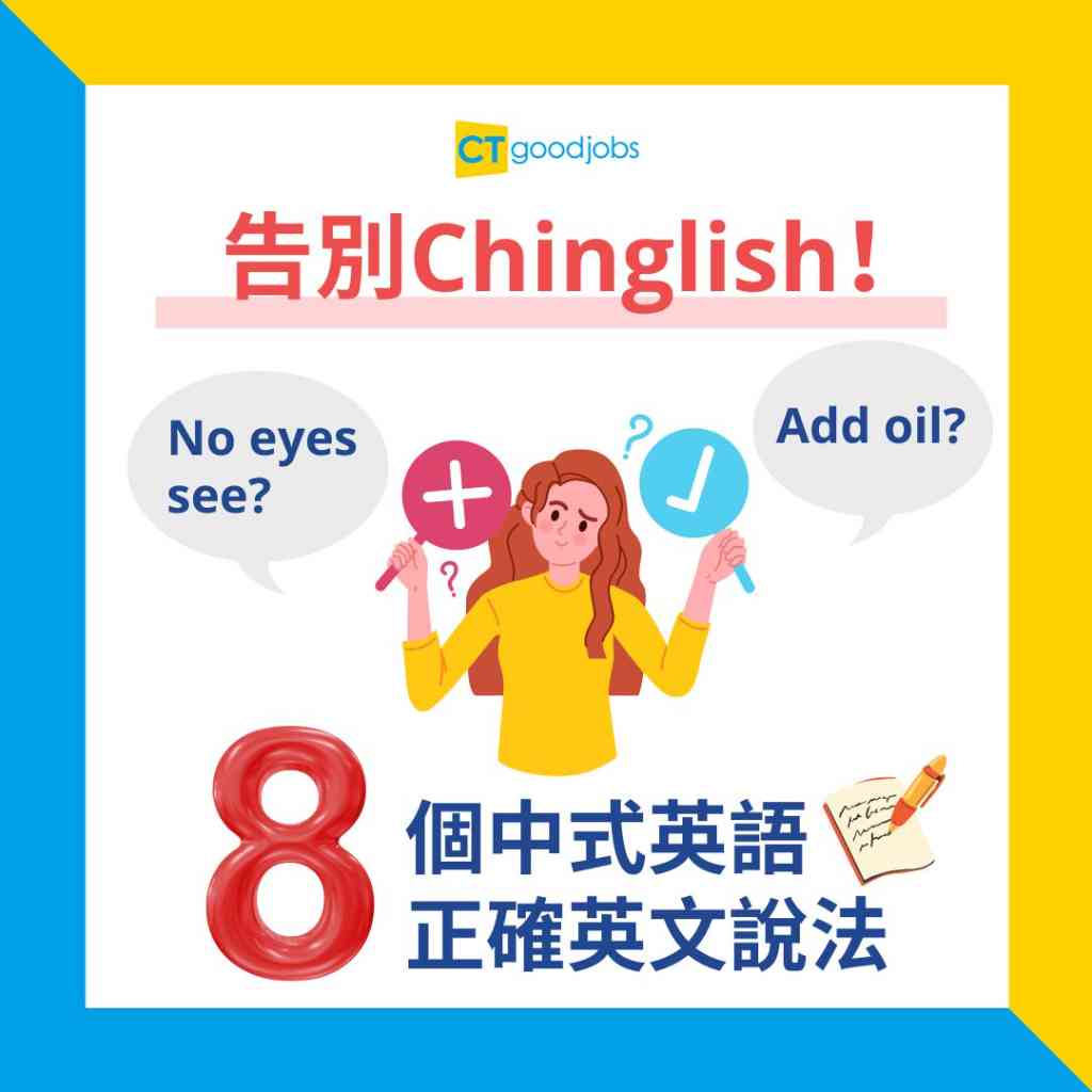 不過,若然打工仔在職場上使用Chinglish,別人或會不明白說話當中的意思,因此大家不妨多學中式英語的正確英文說法。