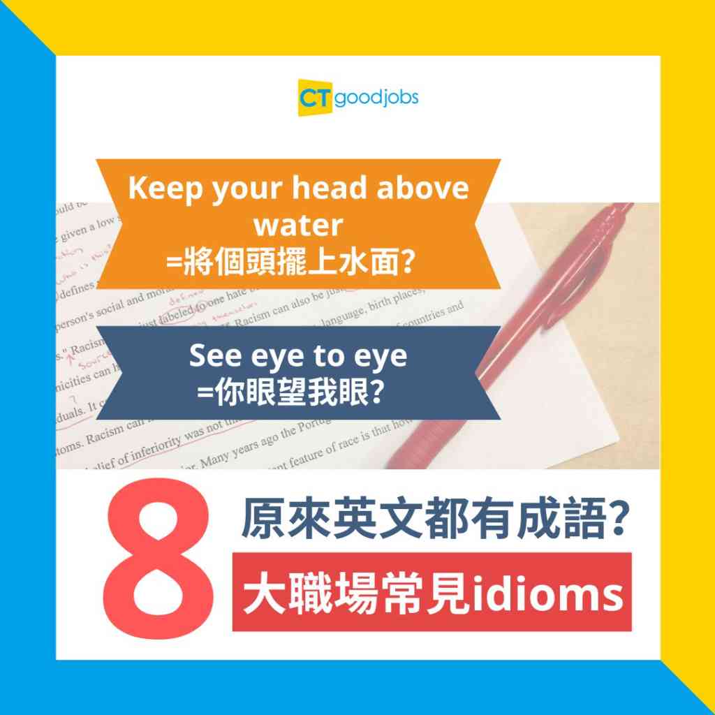 Idioms有很多,不少亦可應用在職場上,只要打工仔學習好以下8大常見idioms,就能避免會錯意的尷尬情況。