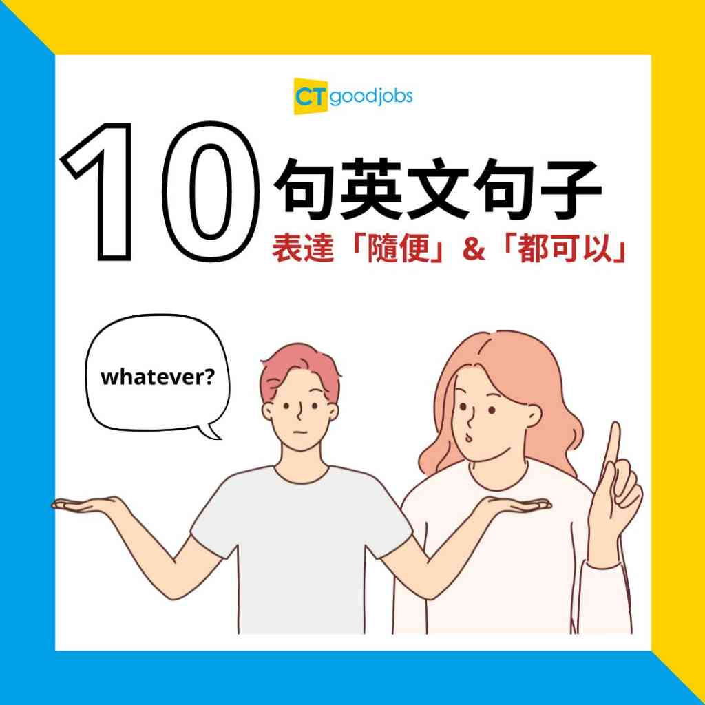 在外國人看來,「Whatever」的語氣帶有煩躁的意思,是比較無禮的表達方式。以上10句超道地英文與「Whatever」有相同意思,但其態度則完全不一樣。學會以上實用英文句子,便能讓你輕鬆應對同事或老細!