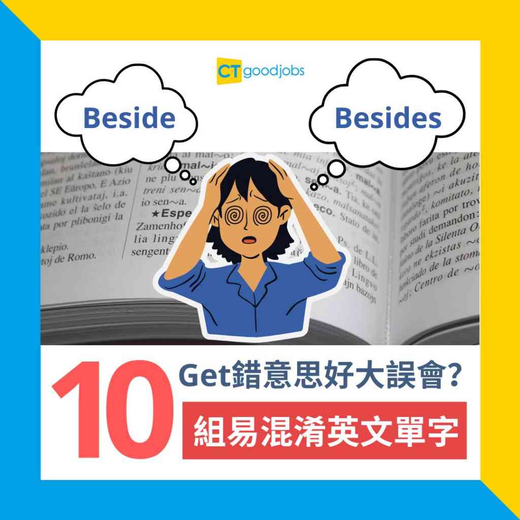 【Beside VS Besides有咩分別?】英文有26個字母,能夠組合成千千萬萬的英文單字,而當中難免有些十分相似的詞語,容易令人混淆。在職場上,也有不少常用單字容易引起誤會,打工仔要留意以下10組易混淆的英文單字,避免尷尬及出醜。