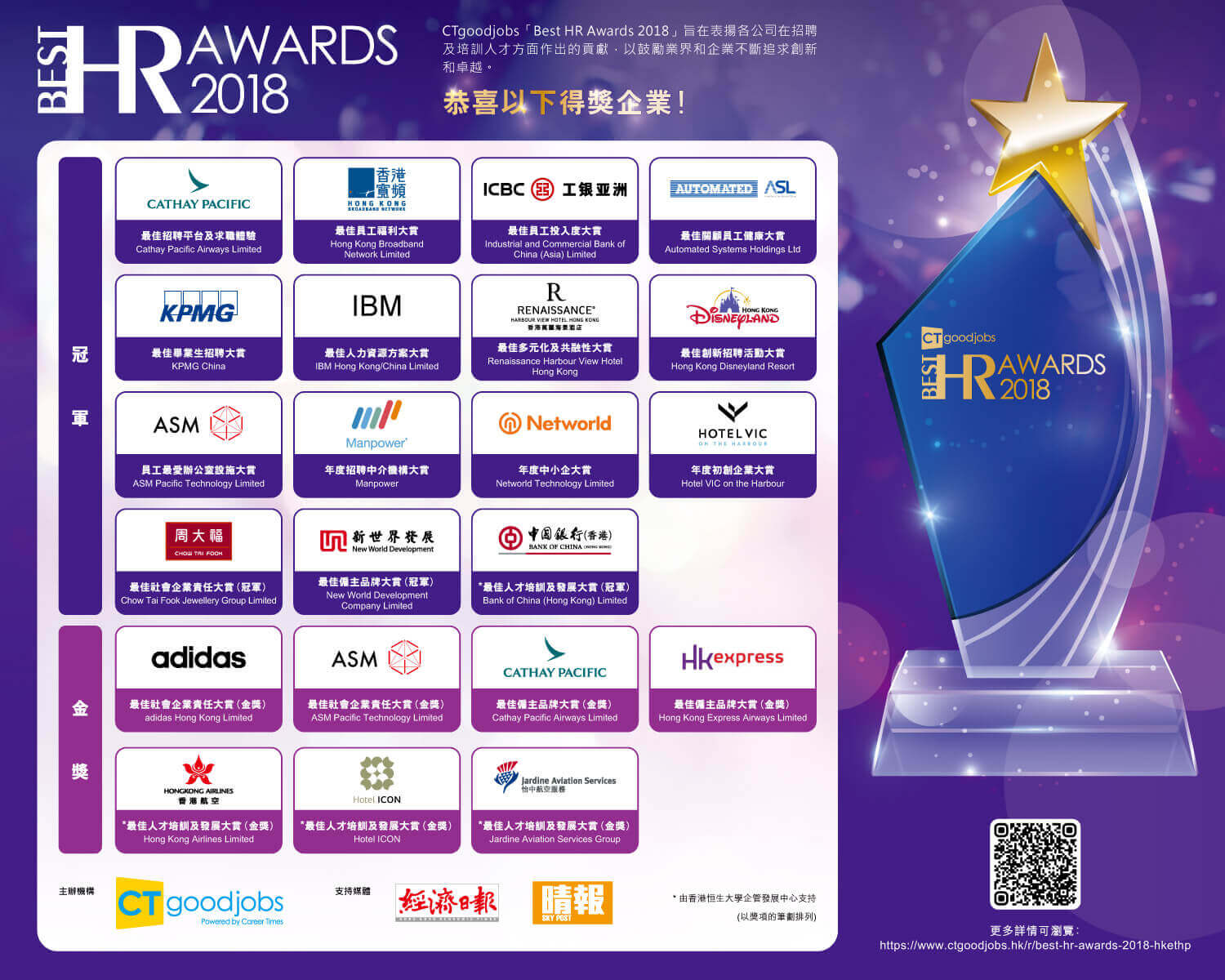 此獎項肯定企業在僱主品牌上的傑出成就,企業須展示其優秀的品牌策略如何吸引更多人才,同時提升員工對於企業本身的品牌體驗。